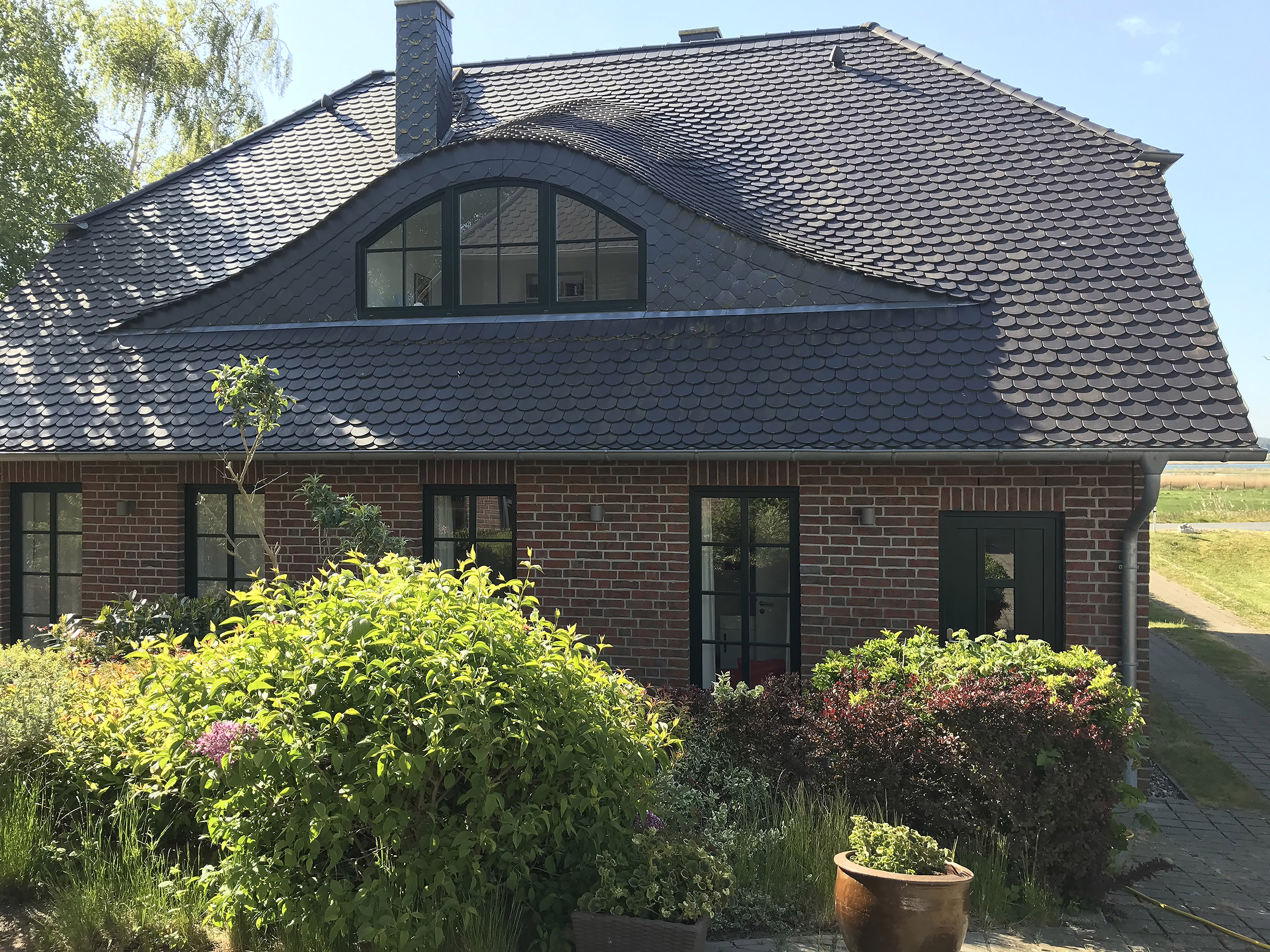 // Eine Liege- und Spielwiese ist hinter den beiden Häusern angelegt.